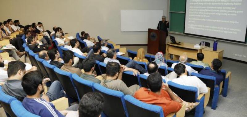 Dr Salman Shah, former minister of finance and advisor on finance to the Prime Minister, spoke to a packed audience on Friday, 22 September, 2017 at the Suleman Dawood School of Business at LUMS. He spoke about the role of business in creating a manufacturing base in the region and the important role that CPEC can play towards that. He was of the view that without institutional and human resource development, we may not be fully able to get benefits of the project. He was also of the view that contrary to the view of some people, CPEC would bring in benefits for our economy if we think China as our market and hence increase the market for our goods. Dr Shah served as finance minister of Pakistan from 2004 to 2008, a period of extensive economic reform and change. His tenure was significant for the development of the private sector, large FDI flows into the country and a successful return to international capital markets with the issuance of global depositary receipts, Eurobonds and Islamic Sukuk bonds. The event was well attended by senior management professionals, LUMS MBA students, PhD management students, and LUMS alumni.